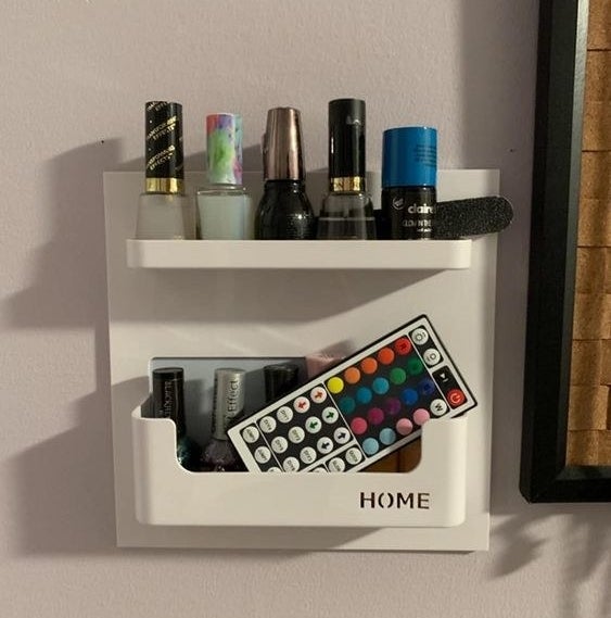 An adhesive bedside organizer you can stick on your wall so all of your bedside necessities are within easy arm's reach.